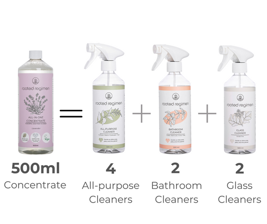 A 500ml bottle of All-In-One Concentrate can make a total of 8 bottles of cleaners:
