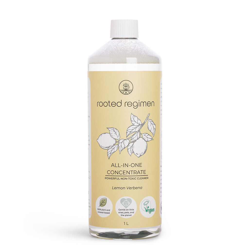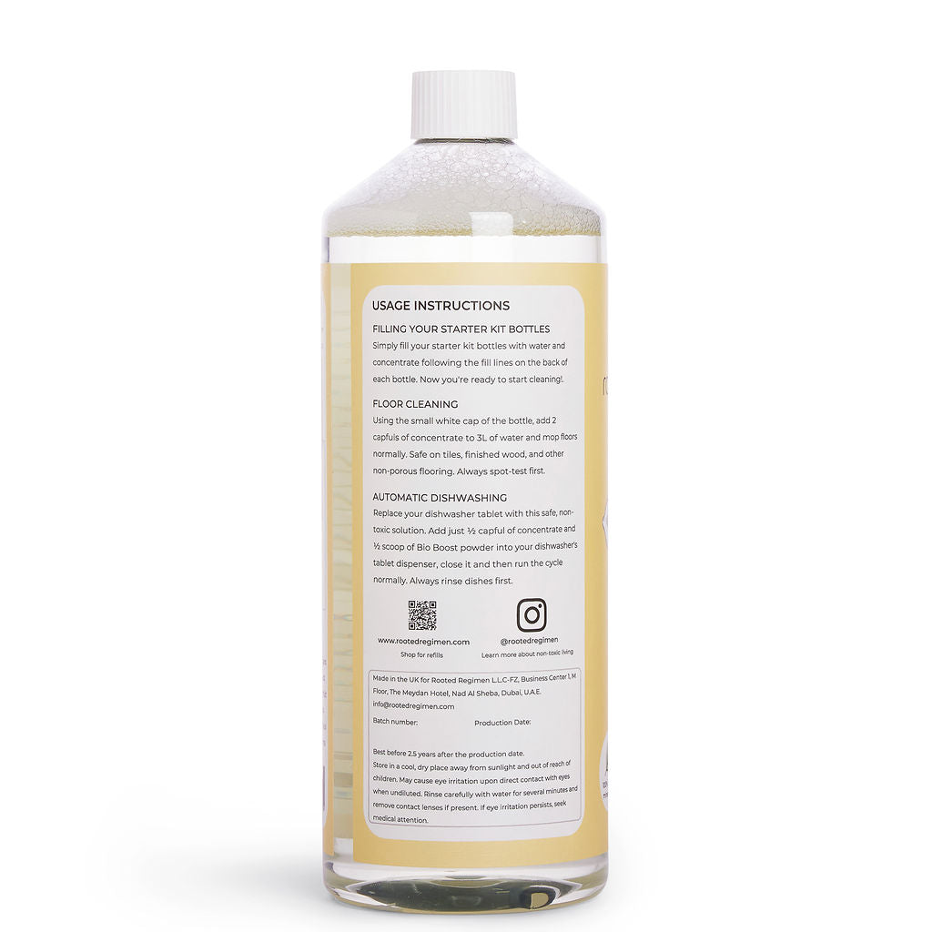 2. All-In-One Concentrate (1L): This 100% plant and mineral-based multipurpose cleaning concentrate is used to fill and refill all your starter kit bottles. It's so concentrated that one liter makes 12 bottles of cleaners!