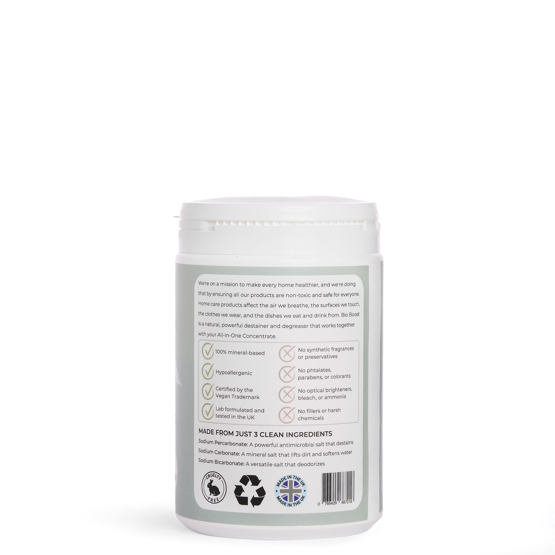 Bio Boost: Made of only three mineral salts that are powerful and non-toxic: