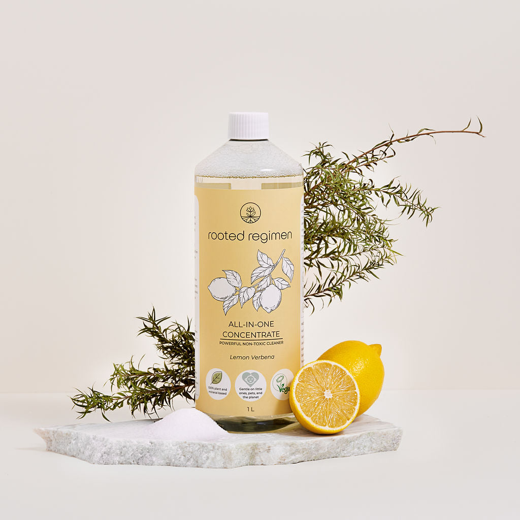 Our All-In-One Concentrate is a powerful, 100% plant and mineral-based, hypoallergenic multi-purpose cleaner that can tackle the toughest laundry and cleaning jobs around your home. It's natural cleansing and deodorizing power will leave your home, clothes, and dishes smelling fresh without the use of any fragrance components.